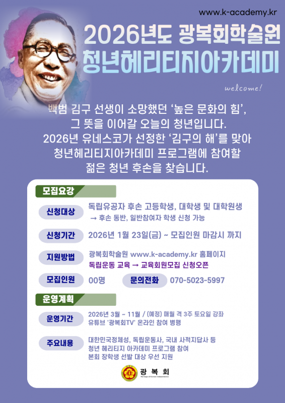 2026년 독립영웅 아카데미, 청년 헤리티지 아카데미 회원모집