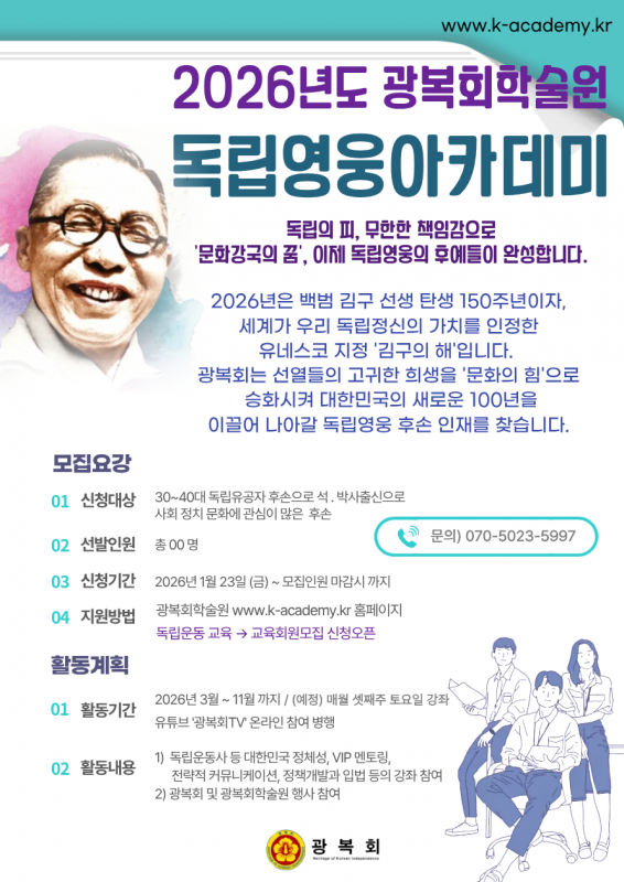 2026년 독립영웅 아카데미 회원모집