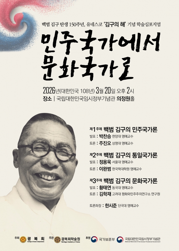 2026년은 백범 김구 탄신 150주년 '유네스코 기념해'입니다. 백점 김구 선생이 소망했던 '높은 문화의 힘' 오늘 날 우리가 이어갈 차례입니다.